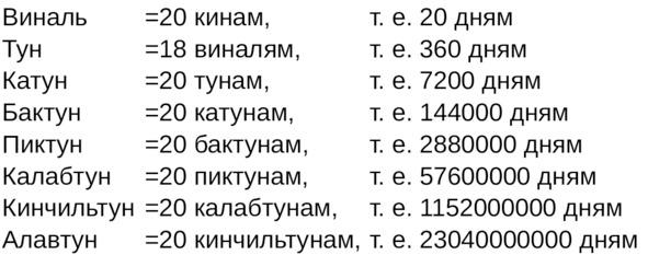 «Длинный счет» образован серией временных циклов, основной единицей которой является, естественно, день (кин).