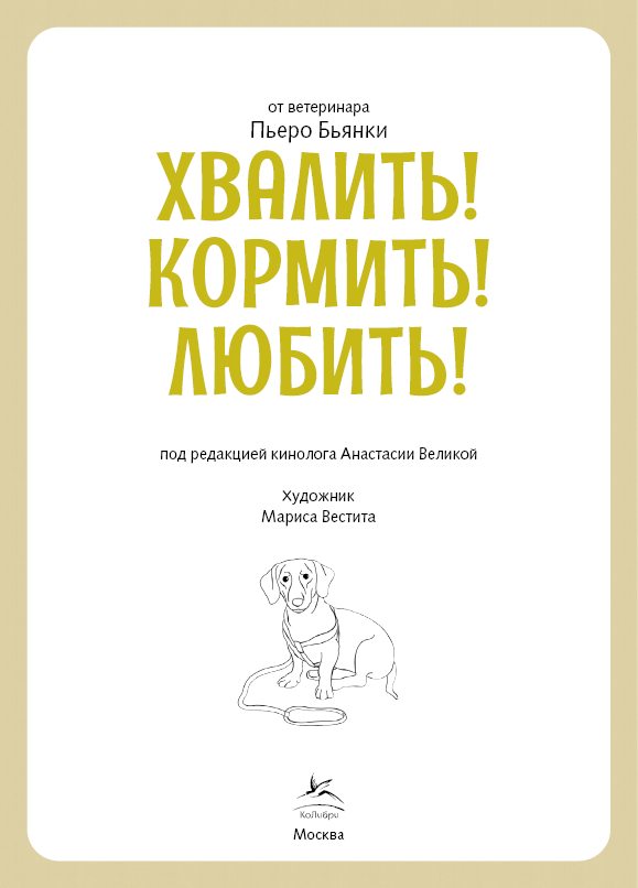 Хвалить! Кормить! Любить! Обаятельное пособие по воспитанию счастливой собаки / Пьеро Бьянки ; [пер. с англ. А. С. Великой]. — М. : КоЛибри, Издательство АЗБУКА, 2025.