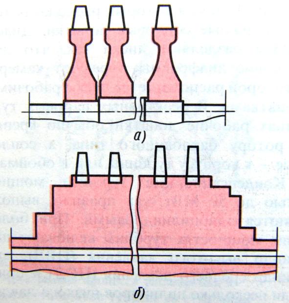Роторы паровых турбин могут быть дисковыми или барабанными. Дисковая конструкция характерна для турбин активного типа, барабанная — реактивного.