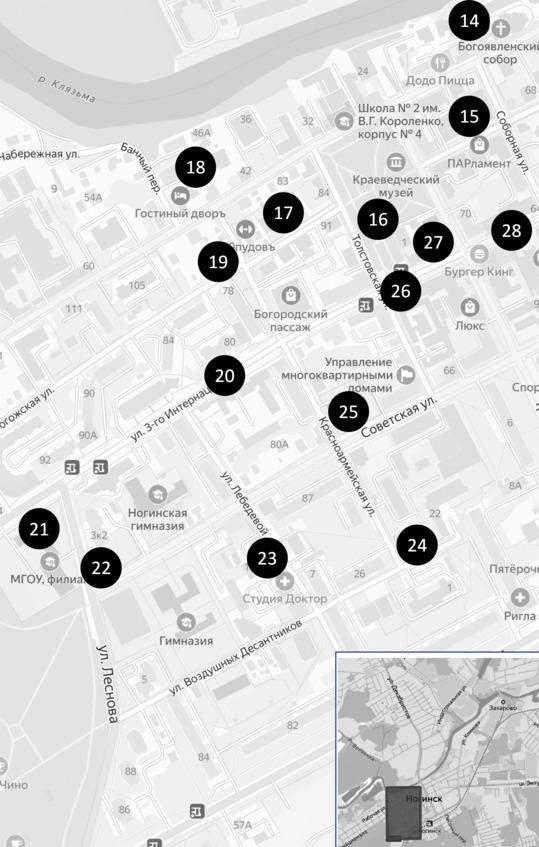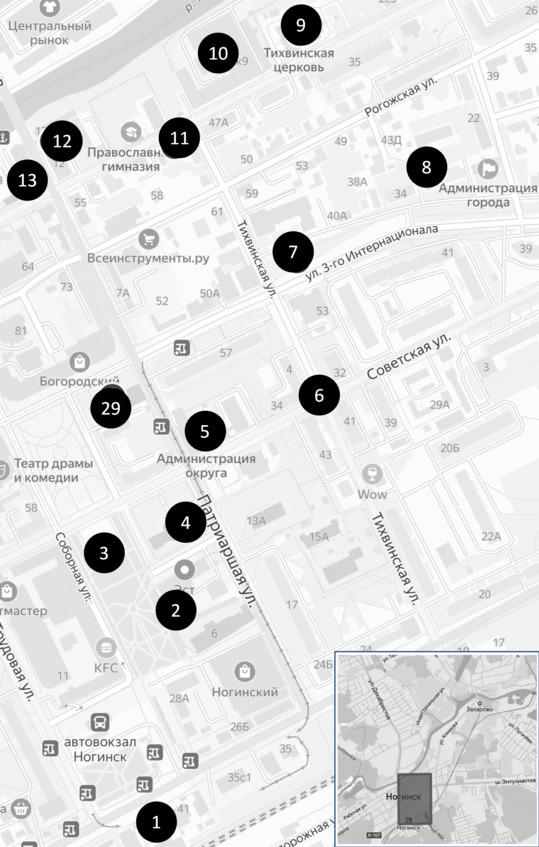 …Московскому генерал-губернатору город понравился. Предлагаем и вам совершить экскурсию по старому Богородску, посмотреть исторические здания, послушать связанные с ними истории. Естественно, сегодняшний Ногинск, как с 1930 года называется Богородск, неузнаваемо изменился. Но мы попробуем заглянуть в его историческое прошлое.
