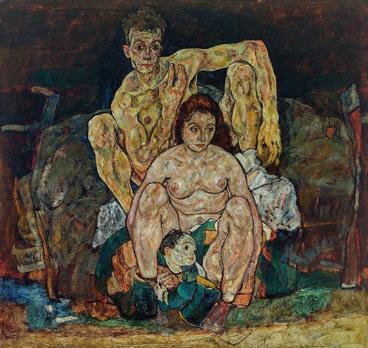 В 1918 году австрийский художник Эгон Шиле работал над картиной – портретом своей семьи. Он успел завершить лишь часть полотна, на котором, помимо него, были еще три фигуры: сам Шиле сзади, его изможденное обнаженное тело сгорблено, его меланхоличный взгляд отрешен, он смотрит сквозь зрителя. Перед ним его жена Эдит, она смотрит в другую сторону. Около ее ног ребенок, с беспокойством и страхом глядящий за пределы картины, он прижимается к ноге матери. Все персонажи соединены друг с другом и разобщены одновременно. Снова и снова Шиле говорит об одиночестве, и этот рассказ, наверное, самый страшный, потому что он прерван смертью всех участников портрета.