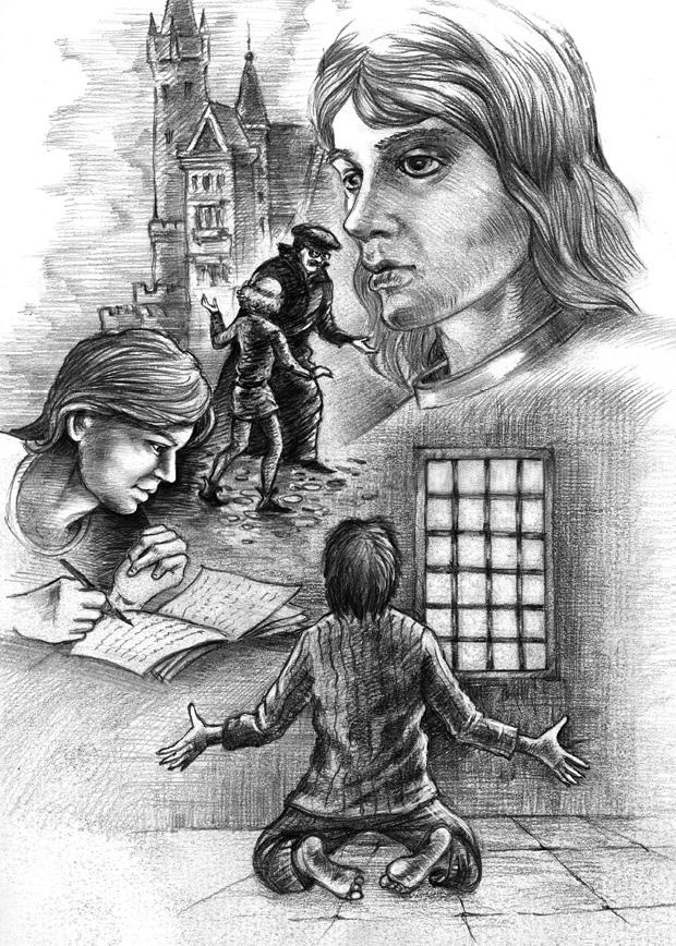 В ответ вспыхнул яркий свет, как будто включили электричество. На секунду Титус ослеп и даже, кажется, снова потерял сознание. Когда же зрение вернулось к нему, он увидел перед собой одетого в нелепый черный балахон лысого, но еще весьма свежего старика с широкими усами и огромным горбатым носом. Нос, надо сказать, был главным, все организующим элементом лица. На нем держались большие круглые, как глаза филина, очки с толстыми стеклами-иллюминаторами. А еще чуть повыше хитро блестели черные глаза, словно предупреждавшие Титуса: у меня, дружок, приготовлен для тебя сюрприз. В самом деле, не говоря ни слова, старик протянул ему какую-то свернутую трубкой бумагу, обмотанную шелковым шнурком с висящей на нем красной сургучной печатью. На неровной по краям печати был вытиснут герб — длинный меч, зависший между солнцем и месяцем. Титус, который словно того и ждал, без лишних вопросов жадно схватил свиток, быстро развернул его и залпом прочел:
