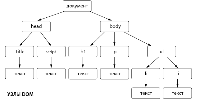 На этой схеме изображены узлы DOM, созданные браузером для представления документа HTML в памяти.