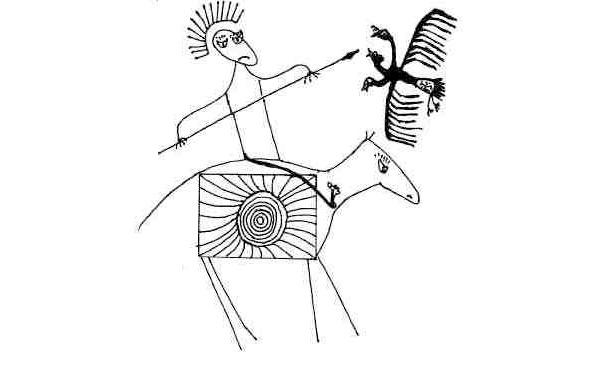 Продетая в большую иглу маленькая, ниткой заплетается на шестьсот шестьдесят шесть узлов справа налево.