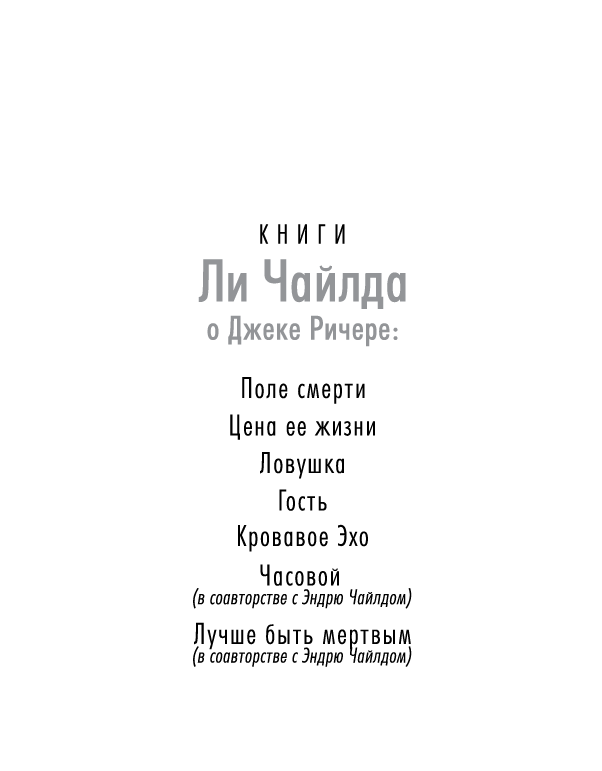 Джек Ричер : Кровавое Эхо : роман / Ли Чайлд ; пер. с англ. В. Гольдича, И. Оганесовой. — СПб. : Азбука, Азбука-Аттикус, 2023. — (Звезды мирового детектива).