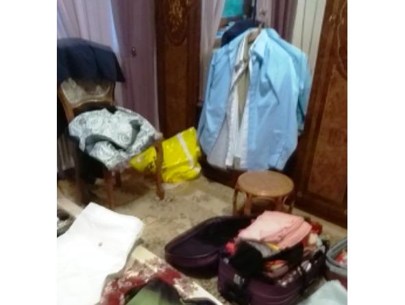 Камера скользит по комнате кровати и по полу, на экране «проплывают» висящие на шкафу рубашки, разложенные комплекты футболок, шорт, спортивных костюмов и проч.