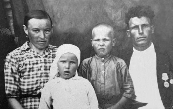 Деда по материнской линии — Антона Игнатьевича я не мог помнить, он умер в 1940 году, ещё до моего рождения. Бабушка Аграфена Андреевна умерла в декабре 1947 года, так что наше с сестрой Лидой раннее детство было освещено её заботой и добротой. Осенью 1945 года вернулся с фронта отец — Василий Фёдорович — работал сначала несколько лет в колхозе, а потом четверть века трактористом. Мать Мария Антоновна всю жизнь работала рядовой колхозницей.