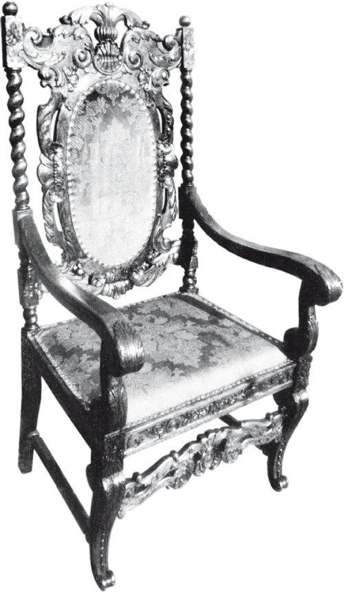 Для начала рассмотрим самый привлекательный случай: вам предстоит освежить ничем не поврежденный предмет из крепкой древесины (чаще всего это дуб), с глубокой резьбой, тотально залепленной многолетними наслоениями всевозможных лаков. Мне однажды попался такой – это было неподъемной тяжести кресло, изукрашенное чудесами барочного орнамента (рис. 1).