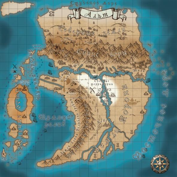 Обширные земли от восточного склона Великого Хребта до самого Восточного моря принадлежали Короне. Селиться с людьми гномам не возбранялось, но данники Короны лишались покровительства кланов. Таких гномов за глаза и называли «захребетниками», то есть живущими по другую сторону Великого Хребта. Но неблагозвучное название не оставляло сомнений, каким было отношение сообщества мастеров к таким родичам. Владения же клана Синих Гор, к которому и принадлежал род Ванера, словно неприступной стеной, с севера были огорожены горами, давшими клану свое имя. Второй крупнейший хребет был не так высок. Зато пересекал весь материк от Западного моря до Восточного, уходя под воду чередой голых островов и рифов по обе стороны от материка. Вершины Синих Гор неизменно были укрыты тяжелыми шапками ледников. До недавнего времени было принято считать, что по ту сторону Синих гор нет вообще ничего, кроме самих гор, тянувшихся до самого края земли. Поэтому гномы клана Синих Гор частенько бросались неприятным словцом, намекая, что уж в их славном клане кого-кого, а «захребетников» нет и быть не может. Правды в этом было не больше, чем в любом другом поводе для драки, потому что в предгорьях и Синих гор, и Великого Хребта было одинаково много гномов, охотно ведших дела с торговцами Короны. Равнинная же часть побережья, именуемая Рукоятью Серпа, принадлежала обоим кланам и на деле была столицей гномьих земель. Огромным городом, своими кварталами занявшим уже почти весь полуостров. Городом, где давным-давно, тонкая грань, разделявшая два клана, стиралась вовсе, растворяясь в бурлящей жизни общих интересов породнившихся родов гномов. Такие крепкие узы было не под силу разрушить даже навеки разделившей два горных массива полноводной реке, названной Великой то ли из-за близости к одноименному горному хребту, то ли из-за того, что данное имя подходило ей как нельзя лучше. Её воды, бравшие начало в ледниках Синих гор, делили материк, разливаясь с запада на восток от Шумного залива Рукояти Серпа, до самого Тиля, и с севера на юг от предгорий Синих гор до южного края материка. Воистину, великая река огромной буквой «Т» разделила материк на три части, дав жизнь самым крупным городам Альта. Верхним штрихом протекая вдоль северного склона Синих гор, река связала северо-восток земель Короны с западной — Рукоятью Серпа. Основание же литеры «Т» — самый полноводный южный рукав Великой. Он соединял крупнейшие города, разросшиеся благодаря бойкой торговле. Огибая Общий город и минуя столицу земель Короны — Кевеллу, Великая впадала в Южное море, разветвляясь десятками притоков, даруя людям лиги и лиги плодородных земель, которых так не хватало обоим кланам.