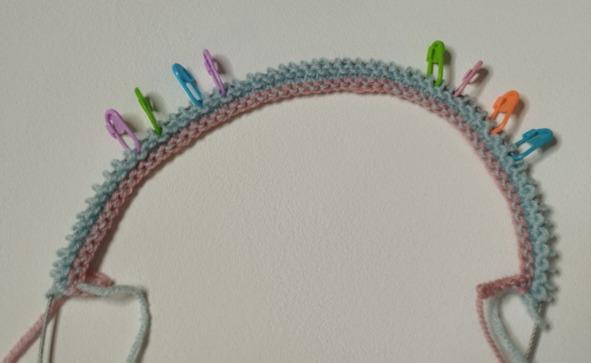 — 12 stitches, marker, 2 stitches, marker, 4 stitches, marker, 2 stitches, marker, 19 stitches, marker, 2 stitches, marker, 4 stitches, marker, 2 stitches, marker, 12 stitches