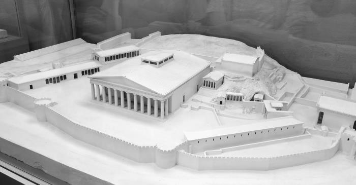 Модель Элевсинского святилища римского периода. Телестрион – зал, где проходили мистерии; справа Малые и Большие монументальные проходы.