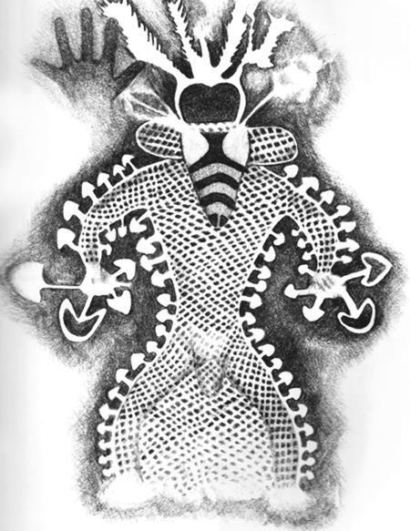 Пчелиный шаман, покрытый грибами, петроглиф в пещере в Тассили, пустыня Сахара. Неолит, 9000–6000 годы до н. э.