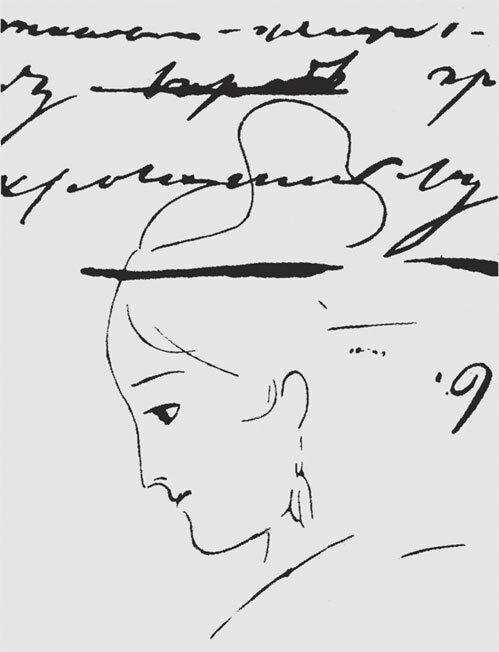 Анна Керн. Рисунок А. С. Пушкина в тексте рукописи, 1829 г. Собрание Всероссийского музея А. С. Пушкина.