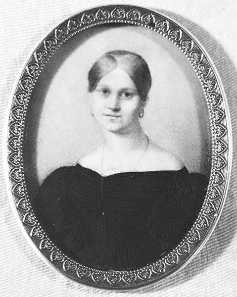 Если не считать теневого силуэта, о котором еще будет рассказано дальше, и рисунков Пушкина, безусловно имеющих массу достоинств, но никак не претендующих на фотографическую точность, до недавнего времени было известно только одно изображение[4], где, по общему признанию, запечатлена Анна Керн: миниатюра, выполненная неизвестным и, судя по всему, не слишком профессиональным живописцем. Довольно одного взгляда на портрет, чтобы признать, что он неудачен.