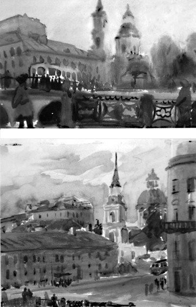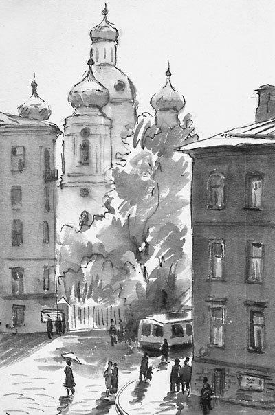 Акварели В.Г. Исаченко Церковь Св. Симеона и Анны. 1975 г.