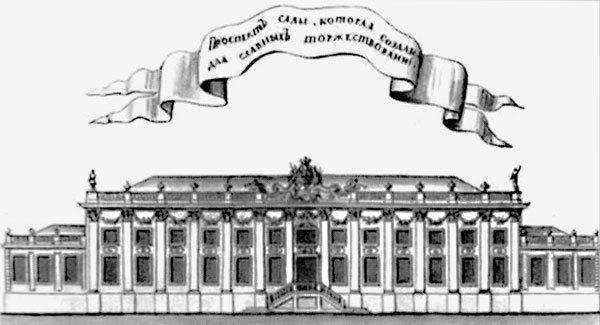 С рисунка М.И. Махаева. Усадьба Бестужева-Рюмина на Каменном острове. 1753 г.