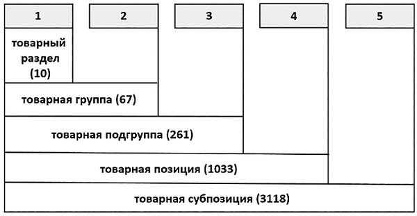 Гармонизированная система описания и кодирования товаров (англ: Нarmonized commodity description and coding system) Всемирной таможенной организации представляет собой международный таможенно-статистический классификатор, охватывающий все товары, представленные на мировом товарном рынке, который включает разделы, товарные группы, товарные позиции и товарные субпозиции, основные правила их интерпретации, а также пояснения, обеспечивающие единообразное определение и кодирование классификационных группировок в целях применения мер таможенно-тарифного и нетарифного регулирования внешнеторгового оборота, запретов и ограничений, мер защиты внутреннего рынка, ведения таможенной статистики внешней торговли (рис. 2.5).