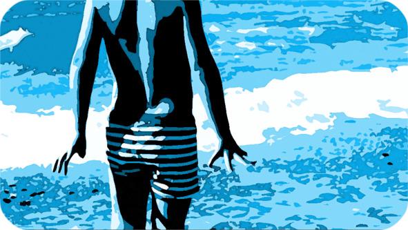 Полуденное солнце. По небу высоко разбросаны перистые облака. В морском воздухе фоном кружат голоса людей, крики птиц и шум прибоя.