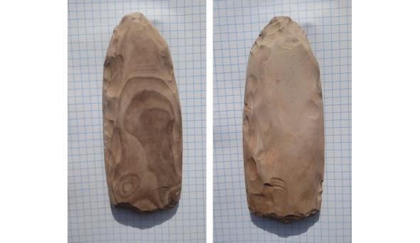 Находка передана для изучения археологам в г. Чебоксары. Предположительно, относится к Балановской археологической культуре. Балановцы были первыми земледельцами в Волго-Вятском регионе, занимались подсечно-огневым земледелием с последующим использованием земель, расчищенных от леса.