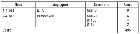 А вот состояние 24-й иад ПВО к началу войны было много хуже, чем это принято считать. В дивизии насчитывалось всего 278 истребителей, в том числе 130 И-16, 48 Як-1, 46 И-153, 41 МиГ-3 и 13 ЛаГГ-3. Таким образом, согласно советской терминологии, две трети матчасти (176 штук) составляли самолеты «старых типов» (см. табл, на с. 12).