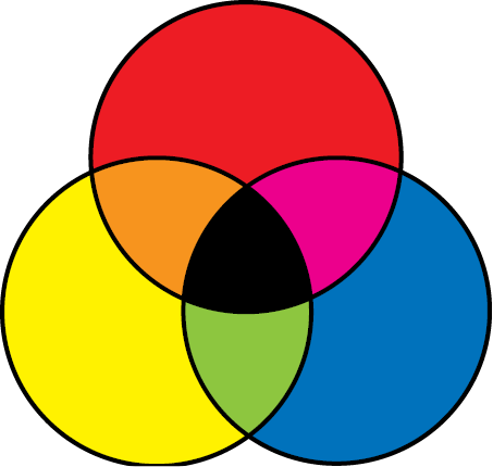 Каждый цветной круг можно рассматривать как фильтр. При рисовании синего круга, накладывающегося на желтый, вы отфильтровываете из исходного света еще больше длин волн и глаз достигают те, что не отсеялись синим или желтым кругом, а мозг их воспринимает как «зеленый».