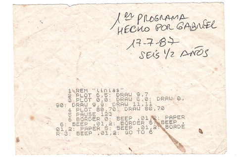 Моя первая задокументированная программа, рисовавшая линии на экране ZX-Spectrum+, которую я написал в шесть с половиной лет