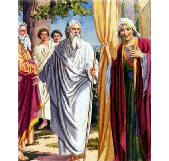 И сказал Господь Аврааму: отчего это сама в себе рассмеялась Сарра, сказав: Есть ли что трудное для Господа? В назначенный срок буду Я у тебя в следующем году, и будет у Сарры сын. Сарра же не призналась, а сказала: я не смеялась. Ибо она испугалась. Но Он сказал ей: нет, ты рассмеялась. И встали те мужи и оттуда отправились к Содому и Гоморре, Авраам же пошел с ними, проводить их (Быт.18:1—16).