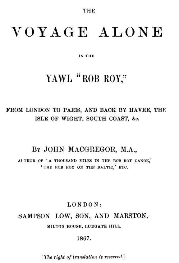 В 1867 г., после двух походов на байдарке, Джон МакГрегор отправляется в плавание во Францию на маленькой двухмачтовой яхте (иоле), спроектированной для одиночного плавания. Вместе с ним мы побываем на Всемирной выставке в Париже и в яхтенной столице Англии — Каусе на острове Уайт.