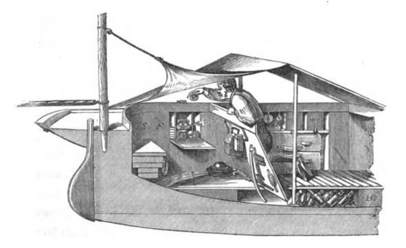 Каюта достаточно удобна для отдыха, но только на якорной стоянке: спать на ходу в море экипажу запрещается. Внутреннее устройство каюты, позволяющее готовить пищу, заниматься чтением и письмом, хранить все припасы и груз, сильно отличаются от любой другой яхты. Все это было специально продумано и хорошо сделано.