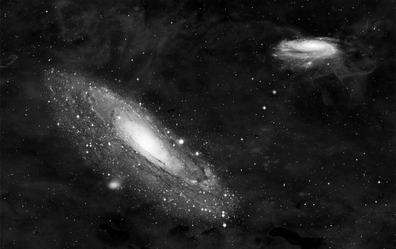 Графическое представление двух соседних галактик Млечного Пути и галактики Андромеды