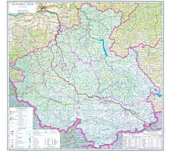 Горный Алтай (Республика Алтай) — часть Алтайского края со столицей в Горно-Алтайске. К началам пеших и водных маршрутов по разным местам Алтая часто подъезжают по Чуйскому тракту и его ответвлениям. Название тракту дано по реке Чуя, хотя до неё он проходит громадное расстояние, начинаясь в Новосибирске, минуя Барнаул, Бийск, Горно-Алтайск, и уходит в Монголию. Горный Алтай он пересекает от Горно-Алтайска, идя сначала на юг, а потом на юго-восток (фото 1 -карта Горного Алтая).