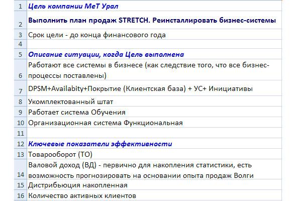 На Урале, как я уже говорил, провести сессию годового планирования нам не удалось. Мы выделили основные задачи компании на ближайшее полгода: выполнить план продаж STRETCH (самый дальний и самый большой план), и реинсталлировать бизнес-системы, то есть взять всё, что есть лучшее на Волге и поставить на Урале. При этом не потерять всего того хорошего, что было на Урале. Под эту цель дальше уже и писали все матрицы. Так как уже полгода прошло, сейчас идет момент, когда мы переписываем все матрицы, пересматриваем цели должностей, пересматриваем KPI и интерпретации. Такую работу разумно проводить раз в полгода, иначе организация пр