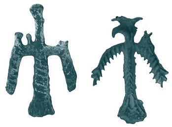 Бронзовые фигурки летящих птиц, найденные в Прикамье.