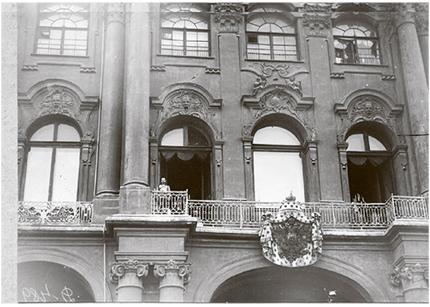 Начало войны. Вечером 1 августа 1914 г. Германия объявила России войну, а 8 августа (26 июля) на заседании Государственной думы, продемонстрировавшем единство перед лицом войны почти всех ее фракций, обычно сдержанный Сазонов плакал на трибуне, не в силах совладать со своими эмоциями. Петербург впал в эйфорию после объявления манифеста о начале войны Николаем II с балкона Зимнего дворца (не правда ли, портрет, символизирующий ничтожность одинокой персоны на фоне могущественного здания монархии, впечатляет), манифестации долго сотрясали Дворцовую площадь. «Величие событий преображало людей, — писал Михайловский, только что вернувшийся из длительной заграничной командировки. — Но все это было мне чуждо и ново, я, переживавший начало войны в Париже и Лондоне, быть может, отчетливее чувствовал мировую сущность войны, но русскую действительность этого момента я принимал как совершившееся чудо. Общественное настроение того времени можно выразить так: мало отвлеченного патриотического понимания момента, мало живой веры в свой народ и его историческую миссию, надо еще верить в то правительство, в тех живых физических лиц вплоть до самого монарха, в их непогрешимость и победоносность. Эта вера тех дней в царя и его правительство, вера, что они дадут победу, от которой зависит судьба народа и государства, это прощение прошлого и был тот фон, на котором развернулись все последующие события, вплоть до падения монархии. Вот, во всяком случае, то новое, что я увидел в эти дни в петербургском обществе»9.