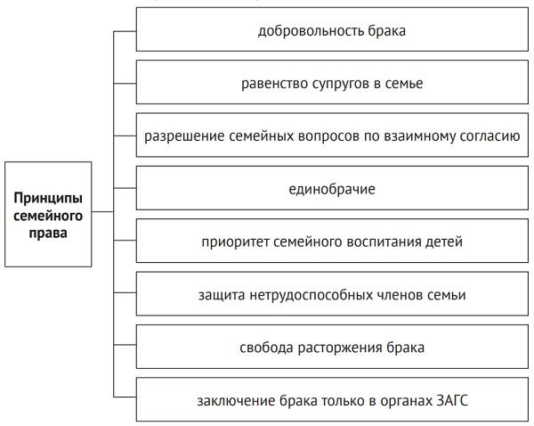 1. Юридическое равенство участников семейных правоотношений — проявляется в отсутствии властного подчинения одного субъекта другому, отсутствует повелевание. Например, любой гражданин может вступить в брак при соблюдении установленных законодателем правил. Семейные правоотношения являются не вертикальными, а горизонтальными, то есть участники правоотношений имеют равные возможности и условия реализации, охраны и защиты субъективных прав.