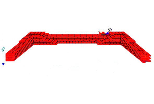 — продольные швы связаны только через пять рядов (кладочная сетка может компенсировать этот недостаток).