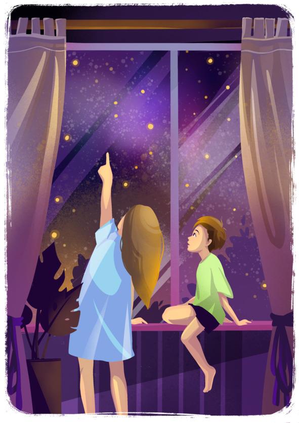 Оля разбудила Сашу для того, чтобы посмотреть на звёзды. Это было их любимое занятие. Они жили в маленьком городе вдали от большого света, поэтому небо над их головой часто покрывалось сверкающим одеялом из звёзд. Особенно хорошо их было видно летом, а скоро как раз и наступало самое настоящее тёплое лето.