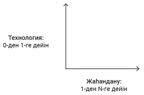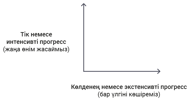 Болашақты ойлай отырып, біз прогрестің болашағына да үміттенеміз. Негізінен прогресс екі түрлі болуы мүмкін. Біріншісі, көлденең немесе экстенсивті прогресс. Ол бұрыннан бар, тиімді үлгілерді қайта көшіреді, яғни бірден N-ге көшу. Көлденең прогресті елестету оңай, өйткені біз оның қалай жұмыс істейтінін бұрыннан білеміз. Ал, екіншісі, тік немесе интенсивті прогресс жаңа өнімдерді жасайды, яғни ол — нөлден бірге көшу. Тік прогресті елестету көлденеңге қарағанда әлдеқайда қиын, өйткені ол үшін ешкім ешқашан болмаған нәрселерді ойлап табу керек. Егер жазу машинасын алып, дәл сондай машинаның тағы жүз шақтысын құрастырсаңыз, сіз көлденең прогресті жасайсыз. Ал егер де сіз қолыңыздағы жазу машинасына сүйене отырып, мәтіндік процессор ойлап тапсаңыз, онда сіз тік прогресс жасап шығарасыз.