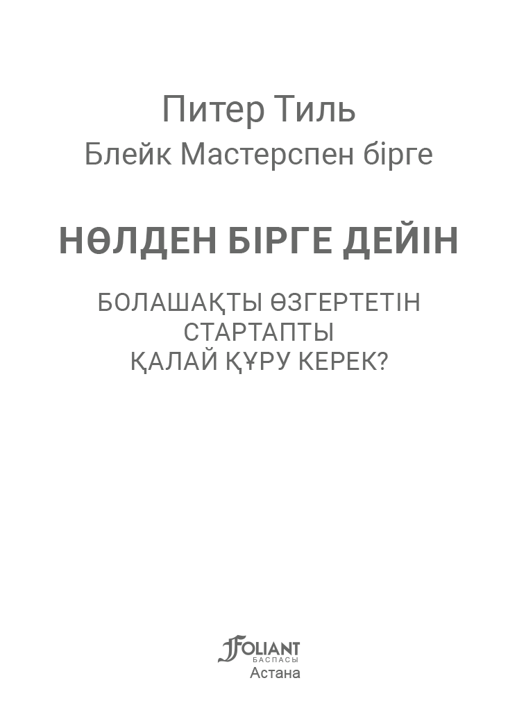 автордың кітабын онлайн тегін оқу Нөлден бірге дейін. Болашақты өзгертетін стартапты қалай құру керек