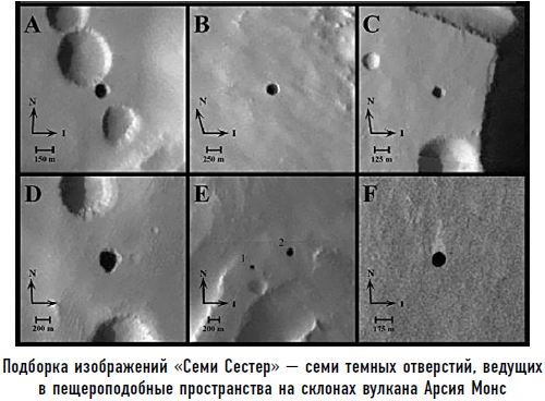 Сегодняшний рельеф планеты изобилует канавами и пещерами. Например, регион Марса Тарсис, на территории которого когда-то бушевал вулкан Альба Монс. Вероятно, потоки лавы от вулкана, застывая в первую очередь сверху, образовывали трубы для внутренних потоков, которые так же твердели после прекращения извержения. Пещеры, созданные таким образом, могут время от времени обваливаться, создавая на поверхности каналы. Но, что удивительно, внутри этих пещер уровень радиации значительно ниже, так что там вполне может существовать жизнь. Недаром именно пещеры и подземные сооружения сегодня ученые рассматривают как потенциальные места, пригодные для обитания землян на Марсе, и находятся они в глубине планеты.