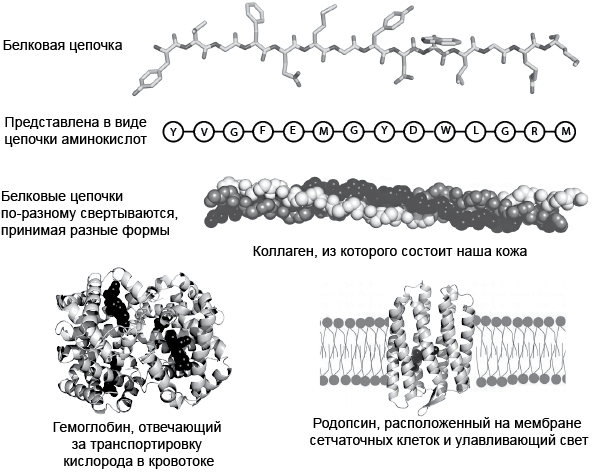 В широком смысле ген — это участок ДНК, содержащий информацию о том, как и когда синтезировать белок. Белки выполняют тысячи биологических функций. Например, обеспечивают мышечные сокращения, позволяют воспринимать свет и тепло, осязать, бороться с болезнями, даже мыслить и запоминать. Многие белки, называемые ферментами, катализируют химические реакции, при которых в клетке синтезируются тысячи других молекул. Итак, белки отвечают не только за структуру и форму клетки, но и за ее функционирование.