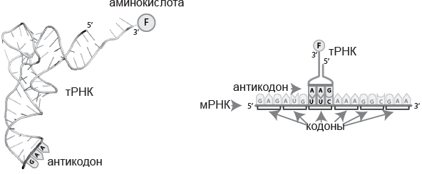 Рис. 2.4. Транспортная РНК: молекулы-адаптеры, подносящие аминокислоты и считывающие код матричной РНК