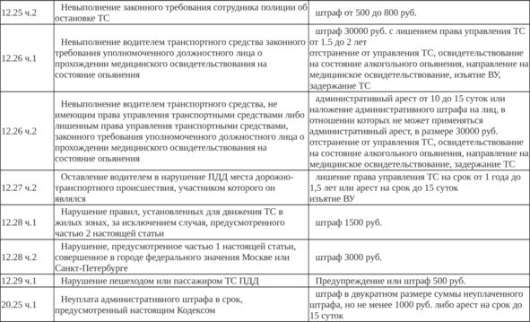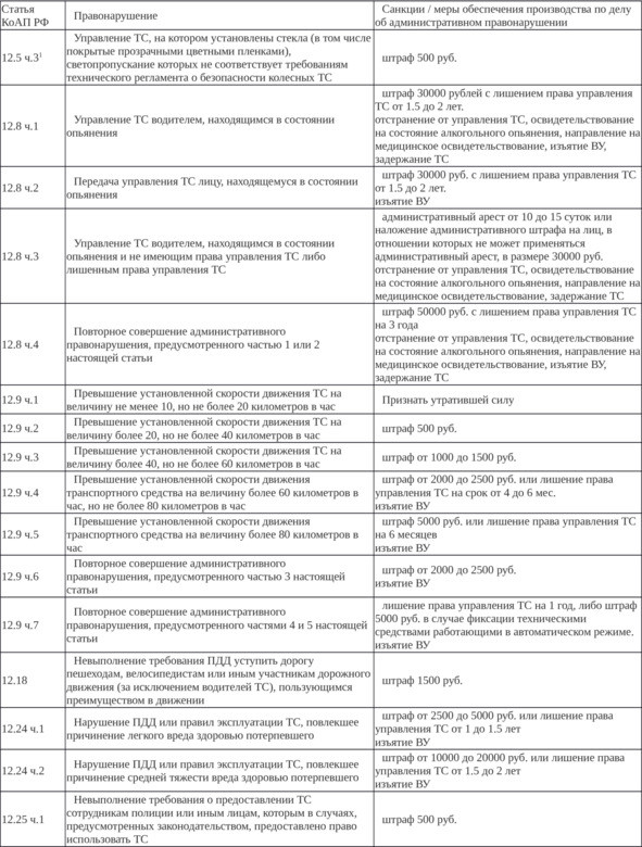 Например. Невыполнение требования ПДД подать сигнал перед началом движения, перестроением, поворотом, разворотом или остановкой влечет предупреждение или штраф 500 рублей.