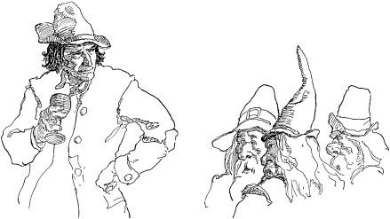 ...И вот эти двое карабкаются вверх по высохшему руслу ручья, попадают в ущелье и, пройдя его, выходят в лощину, «похожую на маленький амфитеатр». И Рип ван Винкль увидел – внизу на площадке «компания странных личностей резалась в кегли. На них было причудливое иноземное платье», а на лицах – суровое выражение. Они молчали; «никогда еще Рипу не доводилось присутствовать при такой унылой забаве». И только стук шаров будил в горах громкое эхо, грохотавшее подобно громовым раскатам.
