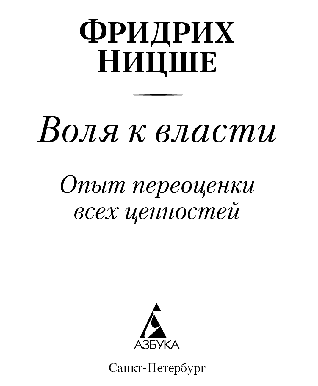 Воля к власти : Опыт переоценки всех ценностей / Фридрих Ницше ; пер. с нем. Т. Гейликмана, Е. Герцык, Г. Рачинского и др. — СПб. : Азбука, Азбука-Аттикус, 2023. — (Азбука-классика. Non-Fiction).
