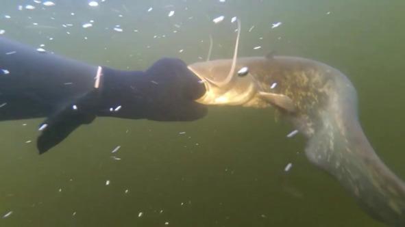 Сом сломал лепестки наконечника о камни. И ушёл!
