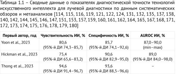 1.2. Зарубежные исследования применимости и качества искусственного интеллекта в лучевой диагностике: систематический обзор метаанализов