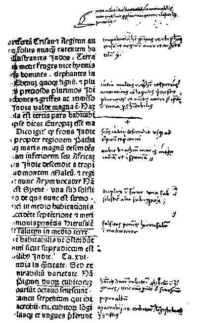 It is interesting on many accounts to see the first voyage of Vespucius thus elucidated, though it had no connection with the application of his name by Waldseemüller to an entirely different region from any that was visited upon that voyage. The real significance of the third voyage of Vespucius, in connection with the naming of America, is now set forth, I believe, for the first time in the light thrown upon the subject by the opinions of Ptolemy and Mela. Neither Humboldt nor Major nor Harrisse nor Varnhagen seems to have had a firm grasp of what was in Waldseemüller's mind when he wrote the passage photographed below in vol. ii. p. 136 of this work. It is only when we keep the Greek and Roman theories in the foreground and unflinchingly bar out that intrusive modern atlas, that we realize what the Freiburg geographer meant and why Ferdinand Columbus was not in the least shocked or surprised.