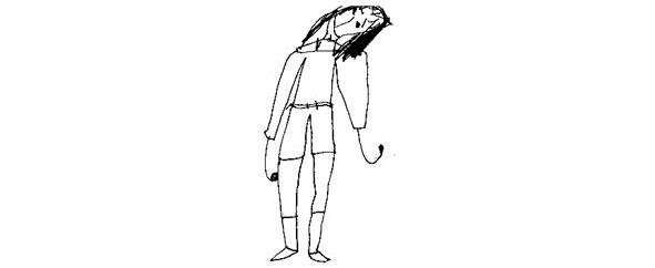 Тропа ведёт через парк с тополями, снизу облепленными снегом, из него кто-то создал волчью морду. Девушка останавливается, рассматривает страшную маску. Молодая особа хороша собой — длинные русые волосы, свободно раскинутые по плечам, на голове — красная шапочка. Губы розовые, но всегда плотно сжатые. Сейчас она говорит себе: «Попробуем вплавь». Её джинсы по щиколотку в грязи, ботинки намокли.