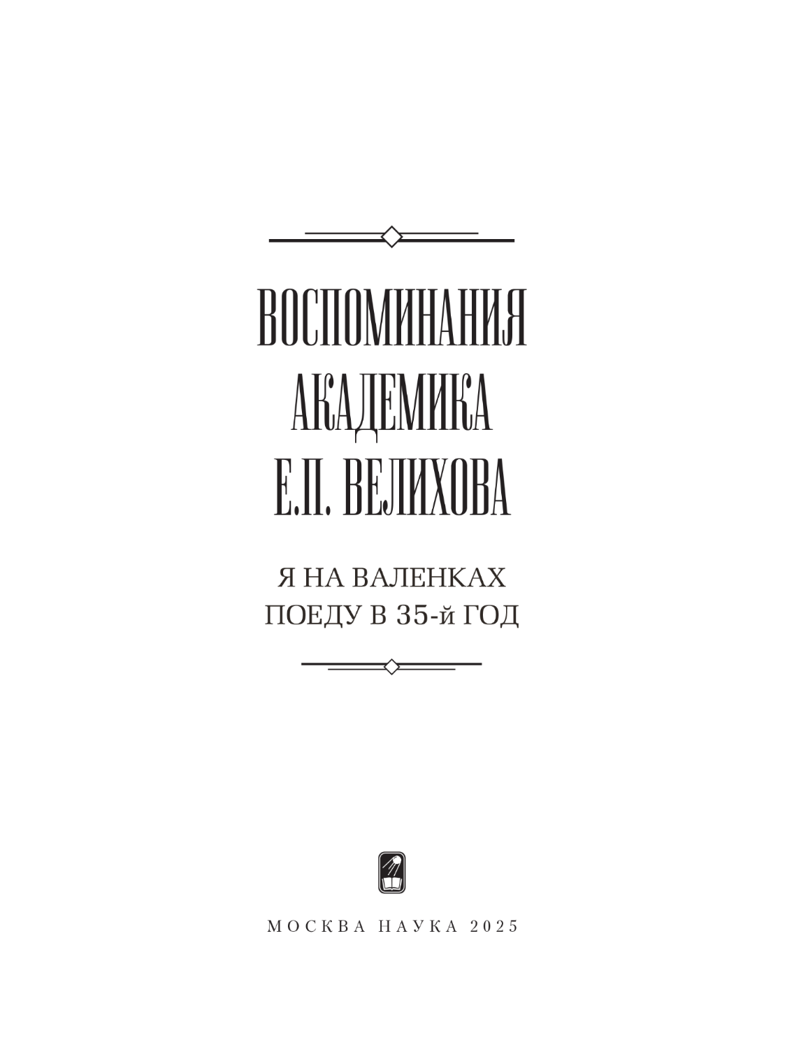 Книга воспоминаний академика Евгения Павловича Велихова издается в год 150-летия его деда Павла Аполлоновича Велихова и двоюродного деда Льва Александровича Велихова